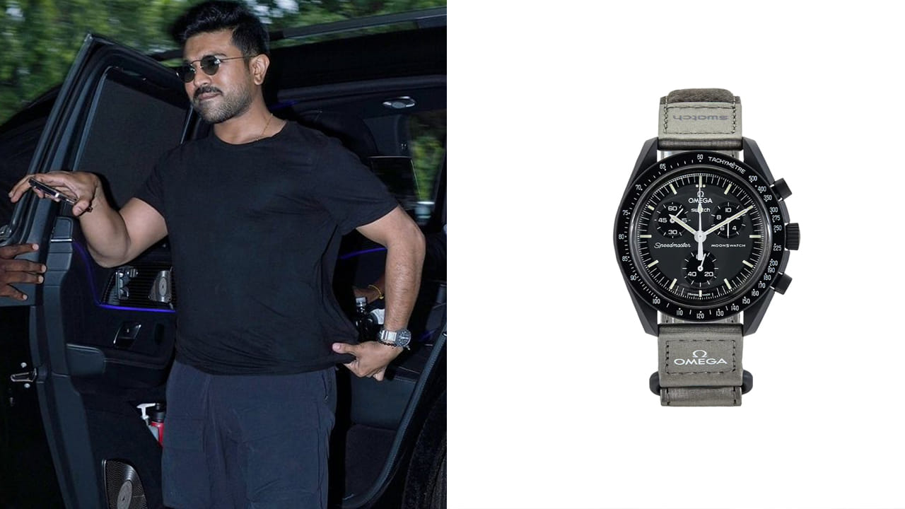 ఆ సమయంలో రామ్ చరణ్ బ్లాక్ టీ షర్ట్.. ముదురు నీలం ప్యాంటుతో సింపుల్ స్టైలిష్ గా కనిపించారు. ముఖ్యంగా చరణ్ చేతికి ఉన్న వాచ్ నెటిజన్స్ దృష్టిని ఆకర్షించింది. చరణ్ ధరించిన వాచ్ SWATCH X OMEGA మిషన్ టు మెర్క్యూరీ టైమ్ పీస్. దీని విలువ $270 Dx’s oeoehg 22,000. ఈ సున్నితమైన టైమ్ పీస్ స్విస్ సింపుల్, స్టైలీష్ లుక్ తోపాటు.. గాంభీర్యాన్ని మిళితం చేసింది. ప్రస్తుతం చరణ్, ఉపాసన ఫోటోస్ వైరలవుతున్నాయి.