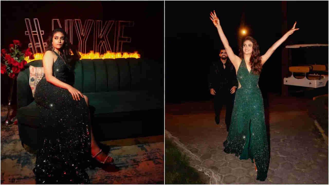 ఈ ఫోటోలు ప్రస్తుతం సోషల్ మీడియాలో వైరల్ అవుతున్నాయి. ధర చూసి నెటిజన్లు షాకవుతున్నారు. కీర్తి సురేష్ కు మంచి డిమాండ్ ఉంది. తన స్కూల్ స్నేహితుడు ఆంటోనితో 15 ఏళ్లుగా ప్రేమలో ఉన్నట్లు ఇటీవలే వెల్లడించింది. గతేడాది గోవాలో వీరిద్దరి వివాహం ఘనంగా జరిగింది. ఇక ఇప్పుడు తన పెళ్లి తర్వాత పార్టీ సైతం అక్కడే జరిగినట్లు తెలుస్తోంది. కీర్తి సురేష్ ధరించిన గౌను అందరినీ ఆకట్టుకుంటుంది. ఈ మెరిసే గౌనును రోహిత్ గాంధీ , రాహుల్ ఖన్నా రూపొందించారు.
