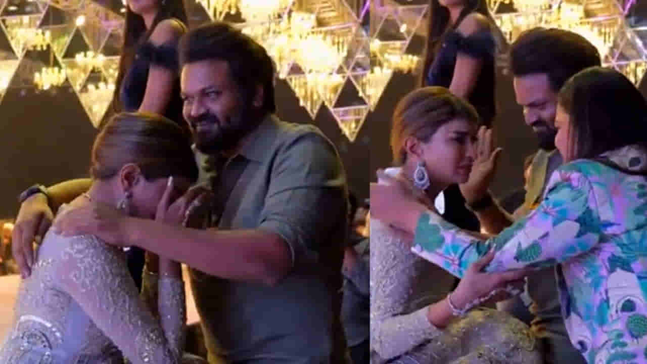 కాగా మంచు లక్ష్మీ స్టేజ్ పై ఉండగా వెనక నుంచి లక్ష్మీని పట్టుకున్నాడు మనోజ్. తమ్ముడిని చూడగానే ఒక్కసారిగా మంచు లక్ష్మీ ఎమోషనల్ అయ్యారు. స్టేజ్ పైనే తమ్ముడి ముందు కూర్చొని కన్నీళ్లు పెట్టుకున్నారు. వెంటనే మనోజ్ భార్య మౌనిక అక్కడికి వచ్చి ఆమెను ఓదార్చే ప్రయత్నం చేశారు. మంచు ఫ్యామిలీలో జరుగుతున్న వివాదాల నేపథ్యంలో మనోజ్ ను చూడగానే మంచు లక్ష్మీ భావోద్వేగానికి లోనయ్యారు. ఈ వీడియో సోషల్ మీడియాలో తెగ వైరల్ అవుతుంది. ఈ వీడియో పై నెటిజన్స్ రకరకరాలుగా స్పందిస్తున్నారు.