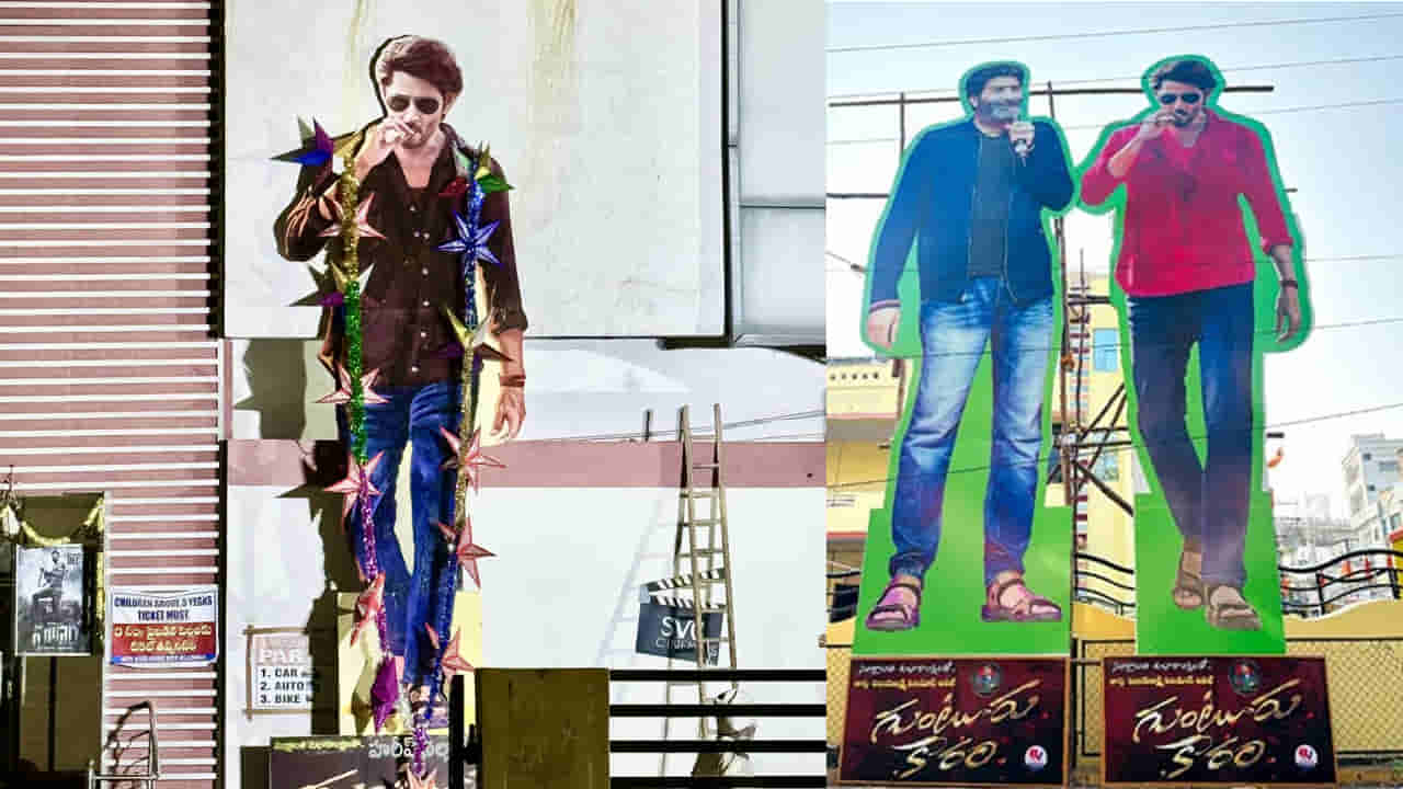 ఇందులో భాగంగా ఈరోజు (జనవరి 6న) గుంటూరు కారం ప్రీ రిలీజ్ ఈవెంట్, ట్రైలర్ లాంచ్ జరగాల్సి ఉంది. కానీ అనుహ్య కారణాలతో ఈవెంట్ వాయిదా వేస్తున్నట్లు ప్రకటించింది చిత్రయూనిట్. దీంతో ఈ మూవీ ట్రైలర్ కోసం వేయి కళ్లతో ఎదురుచూస్తున్న అభిమానులకు మరోసారి నిరాశే ఎదురైంది. ఇదిలా ఉంటే.. రిలీజ్ టైం దగ్గర పడుతుండడంతో రెండు తెలుగు రాష్ట్రాలతోపాటు ఇతర ప్రాంతాల్లో గుంటూరు కారం సందడి మొదలైంది. థియేటర్స్ వద్ద ఘట్టమనేని ఫ్యాన్స్ హంగామా స్టార్ట్ చేశారు. తెలుగు రాష్ట్రాల్లోని థియేటర్ల వద్ద పోస్టర్స్, భారీ కటౌట్స్ ఏర్పాటు చేసి గుమ్మడికాయలతో దిష్టి తీస్తున్నారు.