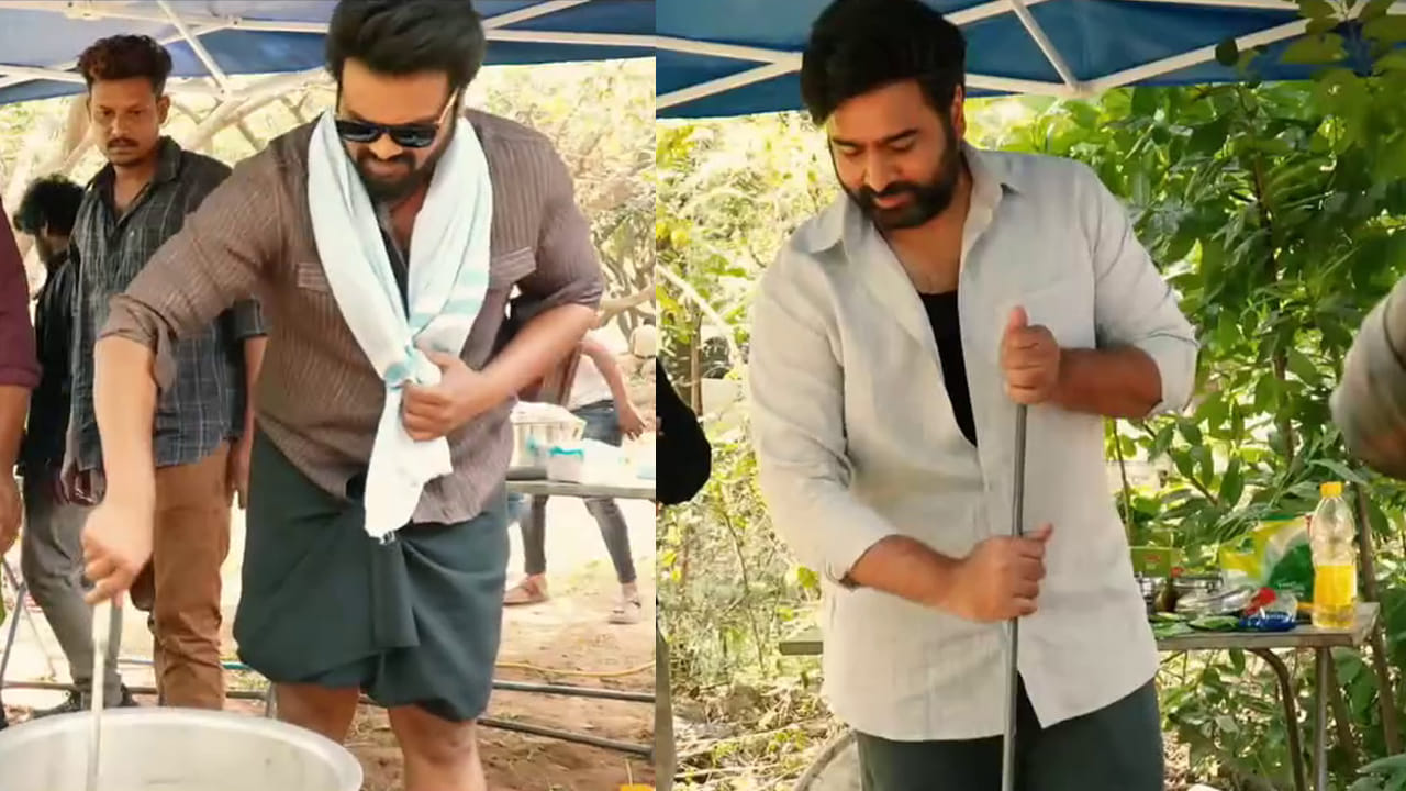 టాలీవుడ్ లో మరో భారీ మల్టీ స్టారర్ మూవీ రానుంది. మంచు మనోజ్, నారా రోహిత్, బెల్లం కొండ శ్రీనివాస్ కలిసి నటించిన తాజా చిత్రం భైరవం. విజయ్ కనకమేడల తెరకెక్కిస్తోన్న ఈ మూవీపై మంచి అంచనాలు ఉన్నాయి. అందుకు తగ్గట్టుగానే ఇప్పటివరకు ఈ మూవీ నుంచి రిలీజైన పోస్టర్లు, టీజర్స్ ఆడియెన్స్ ను అమితంగా ఆకట్టుకున్నాయి. ఇప్పటికే ఈ సినిమా షూటింద్ దాదాపు తుది దశకు వచ్చేసింది. ఈ నెల 30న భైరవం సినిమా గ్రాండ్ గా విడుదల కానుంది. దీంతో ప్రమోషన్ కార్యక్రమాలు కూడా ఇప్పటికే షురూ చేశారు. కాగా ప్రస్తుతం ఈ సినిమా షూటింగ్ ఓ అడవిలో జరుగుతోంది. అయితే టీమ్ అందరికీ హోటల్ ఫుడ్ తెప్పిచ్చే బదులు షూటింగ్ ప్రాంతంలోనే రుచికరమైన వంటకాలు తయారుచేశారు. హీరోలు మంచు మనోజ్, నారా రోహిత్ గరిటె పట్టి బిర్యానీ, గారెలు వంటి పసందైన వంటకాలు దగ్గరుండి వండారు. అనంతరం చిత్ర బృందానికి ఈ రుచికరమైన వంటకాలను వడ్డించారు. ఇందుకు సంబంధించిన వీడియోను చిత్ర బృందం తమ సోషల్ మీడియాలో ఖాతాల్లో షేర్ చేసింది. ప్రస్తుతం ఈ వీడియో సామాజిక మాధ్యమాల్లో తెగ వైరలవుతోంది. దీనిని చూసిన వారందరూ క్రేజీ కామెంట్స్ చేస్తున్నారు.