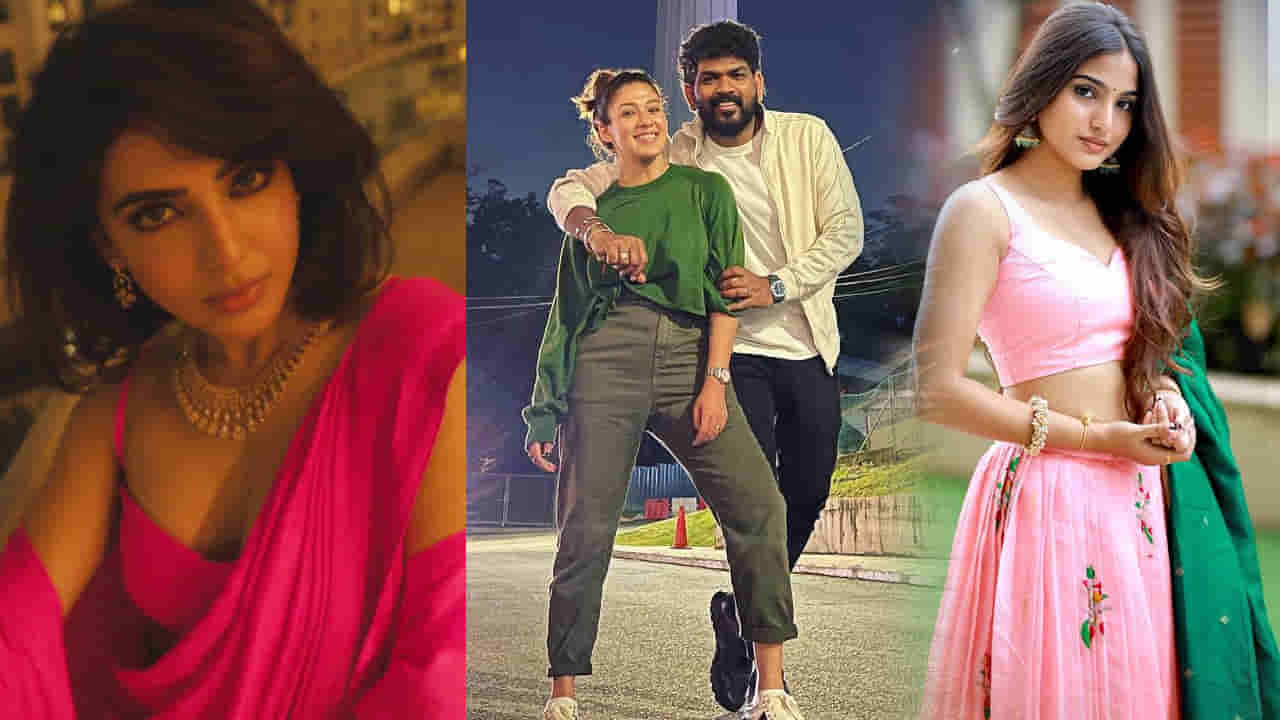 టాలీవుడ్ టూ బాలీవుడ్ సెలబ్రెటీస్ నెట్టింట పంచుకున్న విశేషాలను తెలుసుకోవడానికి నెటిజన్స్ తెగ ఆసక్తి చూపిస్తుంటారు. అందుకే ఈరోజు (అక్టోబర్ 10)న సినీతారలు సోషల్ మీడియాలో షేర్ చేసిన విషయాలేంటో తెలుసుకుందామా. ప్రస్తుతం విదేశాల్లో రెస్ట్ తీసుకుంటున్న సామ్.. తాజాగా క్రేజీ పిక్స్ షేర్ చేసింది. పింక్ డ్రెస్లో స్టైలీష్ ఐకాన్ గా కనిపిస్తోంది. ఇటీవలే జవాన్ సినిమాతో సూపర్ హిట్ అందుకున్న లేడీ సూపర్ స్టార్ నయనతార.. తాజాగా తన భర్తతో కలిసి ఫోటోషూట్స్ చేసింది. ఇక ఇప్పుడిప్పుడే కథానాయికగా నిలదొక్కుకోవడానికి ప్రయత్నిస్తున్న తెలుగమ్మాయి ప్రణవి మానుకొండ లెహంగాలో మరింత అందంగా మెరిసిపోయింది. ఎప్పుడు నెట్టింట యాక్టివ్ గా ఉండే ప్రణీత..ఓ వీడియోను పంచుకోగా.. మీనాక్షి చౌదరి, ప్రియాంక అరుళ్ మోహన్ క్రేజీ పిక్స్ షేర్ చేశారు.