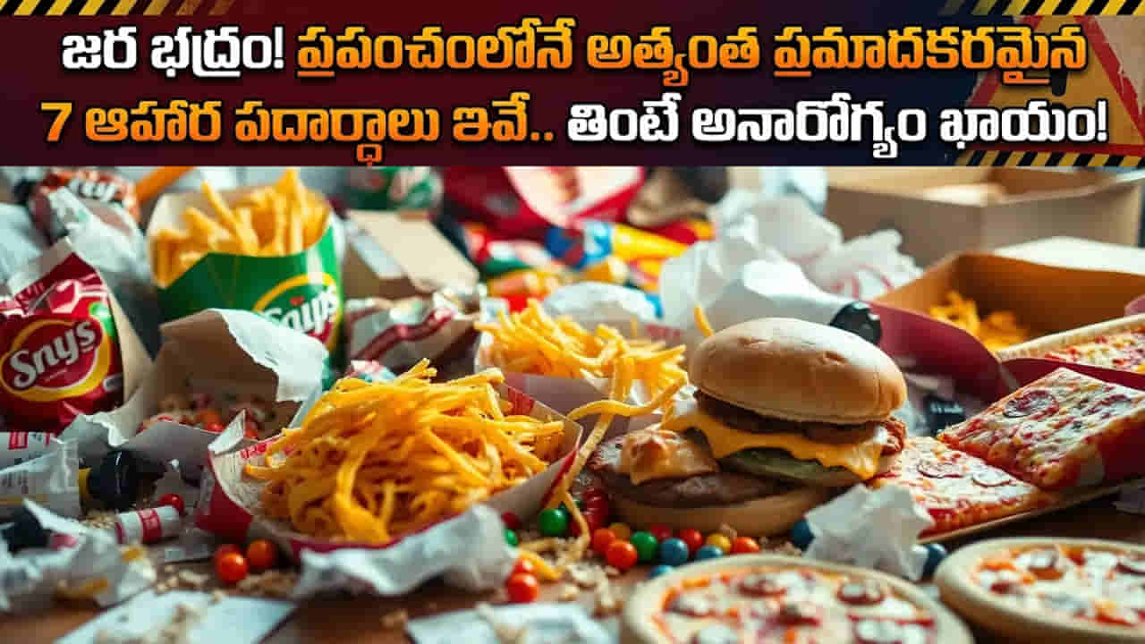 Dangerous Foods: నేటి ఉరుకుల పరుగుల జీవితంలో మనకు తెలియకుండానే మనం అనేక అనారోగ్యకరమైన ఆహారపు అలవాట్లకు బానిసవుతున్నాం. రుచిగా ఉన్నాయని మనం తినే కొన్ని పదార్థాలు మన ప్రాణాలకే ముప్పు తెచ్చే అవకాశం ఉందని నిపుణులు హెచ్చరిస్తున్నారు. ప్రపంచంలోనే అత్యంత అన్-సేఫ్ (అన్-హెల్తీ)గా పరిగణించే టాప్ 7 ఆహార పదార్థాలు, వాటి వల్ల కలిగే నష్టాల గురించి ఇప్పుడు తెలుసుకుందాం.
