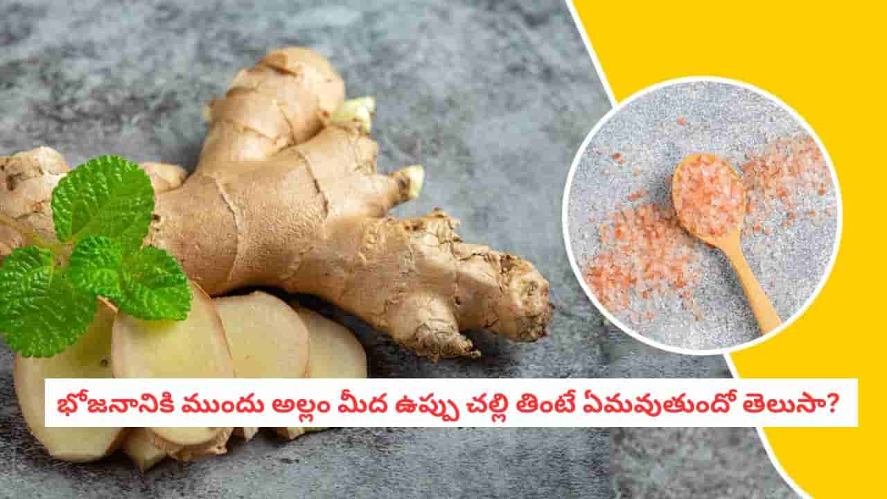 ప్రతిరోజూ మూడు పూటలా భోజనానికి అరగంట ముందు ఒక చిన్న అల్లం ముక్కపై చిటికెడు ఉప్పు చల్లుకుని తినాలి. ఇది లాలాజలం ద్వారా జీర్ణ ఎంజైమ్లు మరియు యాసిడ్ స్రావాన్ని ప్రేరేపిస్తుంది. ఫలితంగా మీరు తిన్న ఆహారం త్వరగా జీర్ణమవుతుంది.