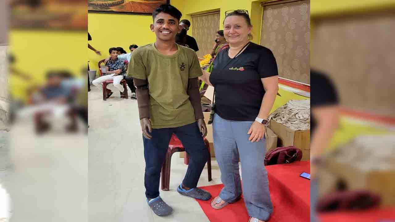 అది మంగళగిరిలోని కృత్రిమ అవయవాల అమరిక కేంద్రం.. రోటరీ క్లబ్ ఆధ్వర్యంలో కృత్రిమ చేతులు, కాళ్లు అమరుస్తున్నారు. ఈ కేంద్రంలో రోటరీ క్లబ్ తరుఫున విదేశీయులు హాజరయ్యారు. రెండు చేతులు లేని ఒక యువకుడు అక్కడికి వచ్చాడు. కృత్రిమ కాలుతో వచ్చిన అతన్ని చూసిన జర్మనీ దేశస్తురాలు క్రిస్ గిల్ ఆశ్చర్యపోయారు. అంతేకాదు అతని జీవితం గురించి తెలుసుకుని మరింతగా షాక్ అయ్యారు.
