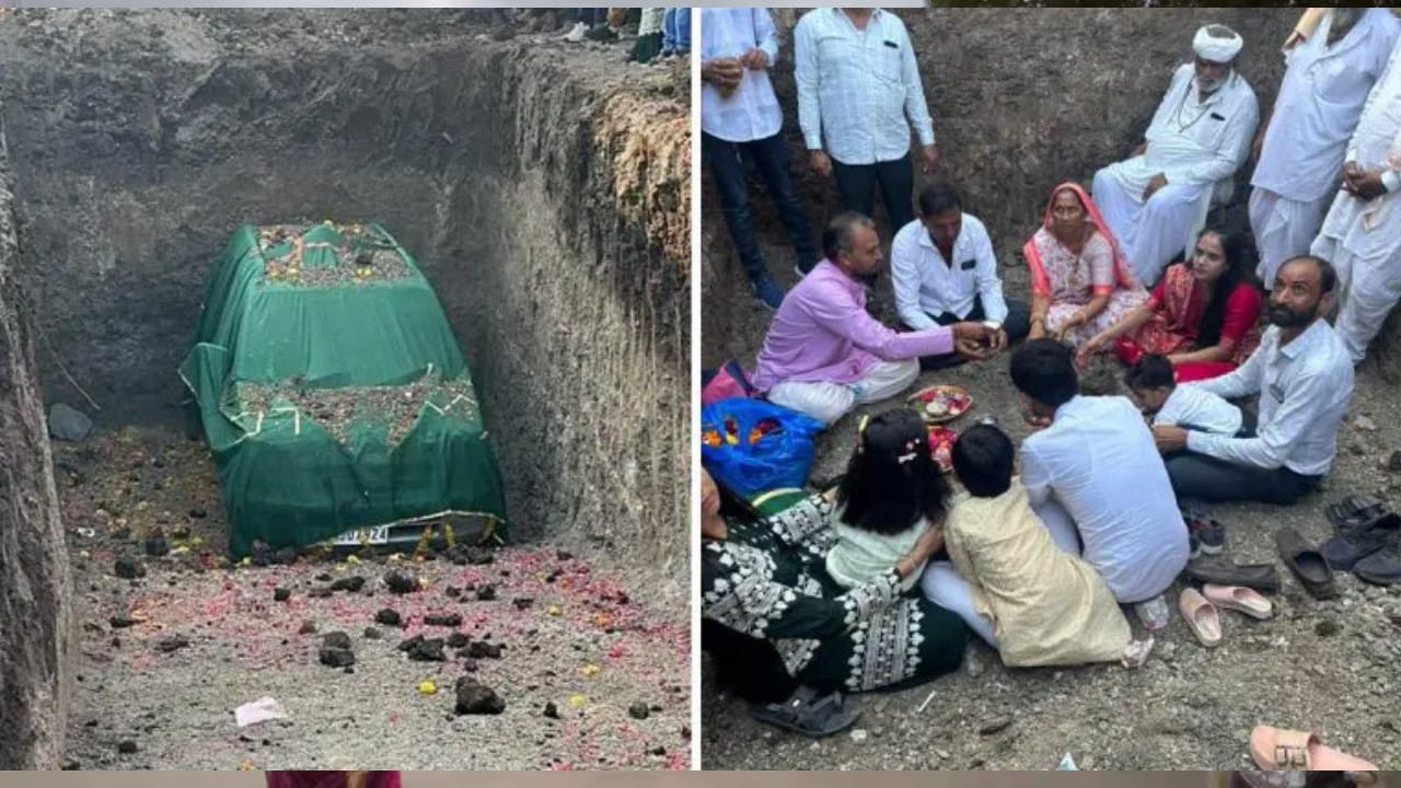 మత సంప్రదాయాలను అనుసరించి సాధువులతో పాటు సుమారు 1500 మందికి విందు భోజనాలు ఏర్పాటు చేశారు. ఈ సంఘటనకు సంబంధించిన వీడియోను సోషల్ మీడియాలో షేర్ చేయడంతో తెగ వైరల్ అవుతోంది. పోలారా కుటుంబం వారి 12 ఏళ్ల వ్యాగన్ ఆర్ కారు కోసం సమాధి చేయడానికి 15 అడుగుల లోతైన గొయ్యిని తవ్వారు. అంతిమ వీడ్కోలు సందర్భంగా కారుకు పచ్చని గుడ్డ కప్పి పూలమాలలు వేసి అలంకరించారు. మతపరమైన ఆచారాల మధ్య అర్చకులు కారుపై గులాబీ రేకులు చల్లి మంత్రోచ్ఛారణలు చేశారు. చివరికి కారును ఎక్స్కవేటర్ మెషిన్ సాయంతో గుంతలోకి తీసుకెళ్లి మట్టిని పడేసి సమాధి చేశారు. కుటుంబానికి ఈ కారు ఎంతో అదృష్టమని, భవిష్యత్ తరాలకు భద్రపరిచేందుకే ఈ ప్రయత్నమన్నారు కుటుంబసభ్యులు.