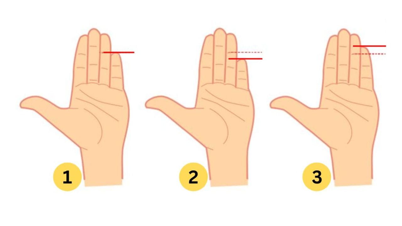 చిటికెన గీత కంటే ఉంగరపు వేలు గీత తక్కువగా ఉంటే : చిటికెన వేలు ఉంగరపు వేలు మొదటి గీత కంటే తక్కువ ఎత్తులో ఉంటే, మీరు చాలా సున్నితమైన, దయాగుణం కలిగిప వ్యక్తులని అర్థం. మీరు ఇతరుల బాధలను త్వరగా అర్థం చేసుకుంటారు. మానవ సంబంధాలకు, ప్రేమకు మీరు ఎక్కువగా విలువ ఇస్తారు. అలాగే మీరు ఎప్పుడు ఎదుటి వారు కష్టాల్లో ఉంటే ఆదుకుంటారు. మీలో ఉన్న ఈ సున్నితత్వ లక్షణం మంచిదే అయినా, మీ భావోద్వేగాలపై మీకు నియంత్రణ ఉండటం చాలా అవసరం. భావోద్వేగాలను అదుపులో ఉంచుకుంటే మీ జీవితం మరింత ప్రశాంతంగా సాగుతుందని నిపుణులు చెబుతున్నారు.