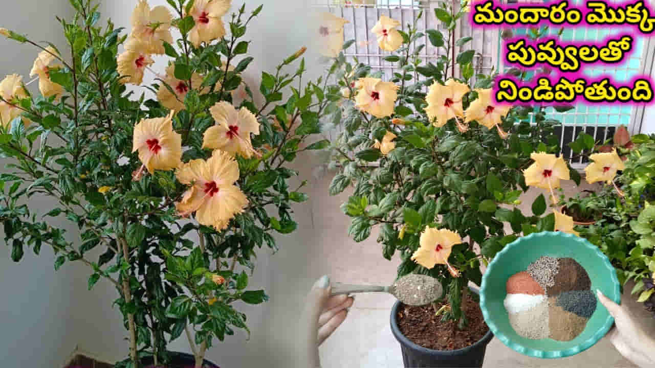 మందార మొక్కలు ఇంటి పెరటికైనా, బాల్కనీకైనా ప్రత్యేకమైన అందాన్ని చేకూరుస్తాయి. అయితే, ఇవి నిండుగా పూలు పూయాలంటే కేవలం నీరు పోస్తే సరిపోదు, సరైన పోషణ తప్పనిసరి. మందార మొక్కల ఆరోగ్యకరమైన ఎదుగుదలకు, పుష్కలమైన పూల దిగుబడికి దోహదపడే ఒక అద్భుతమైన “సూపర్ మిక్స్ ఫెర్టిలైజర్” తయారీ, దాని వినియోగ పద్ధతిని ఇక్కడ తెలుసుకుందాం. ఈ ఫెర్టిలైజర్‌ను వారానికి ఒక చెంచా చొప్పున మొక్కలకు ఇవ్వడం ద్వారా అద్భుతమైన ఫలితాలను పొందవచ్చు.