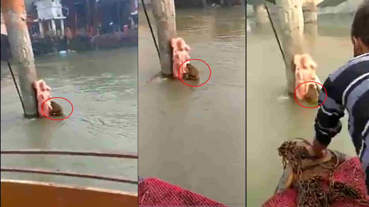 ఓ కోతి అదుపుతప్పి గంగానదిలో పడిపోయింది. ప్రవాహం ఉద్దృతంగా ఉండటంతో కొంతదూరం కొట్టుకుపోయింది. తన ప్రాణాలు ఇకపోయాయని అనుకునేలోపు హనుమంతుడు ఆ కోతికి అండగా నిలిచాడు. దాన్ని నదిలో కొట్టుకుపోకుండా కాపాడాడు. ఈ ఆసక్తికర ఘటన ఉత్తరప్రదేశ్లో జరిగింది. దానికి సంబంధించిన పూర్తి వివరాల్లోకి వెళ్తే..