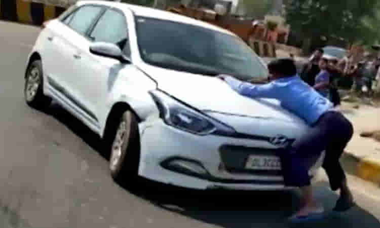 #WATCH In a shocking case of road rage seen in Ghaziabad, driver of a car drove for almost 2 kilometers with a man clinging on to the car bonnet. The driver was later arrested by Police (6.3.19) (Note:Strong language) pic.twitter.com/hocrDi7qgg