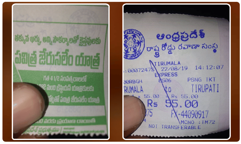 పవిత్ర పుణ్యక్షేత్రం.. హిందువుల ఆరాధ్యదైవం శ్రీవెంకటేశ్వస్వామి కొలువుదీరిన తిరుమల క్షేత్రంలో అన్యమత ప్రచారం మరోసారి కలకలం రేపింది. తిరుపతి నుంచి తిరుమల కొండపైకి వెళ్లే ఆర్టీసీ బస్సు టికెట్ల వెనక భాగంలో ఇతర మతాలకు చెందిన ప్రకటనలు కనిపించడంతో భక్తులు ఖంగుతిన్నారు. ముస్లింల పవిత్ర హజ్ యాత్ర, క్రిస్టియన్ల పవిత్ర జెరూసలేం యాత్రకు సంబంధించిన యాడ్స్ టికెట్ల వెనుక భాగంలో దర్శనమిచ్చాయి. దీంతో సదరు భక్తులు ఆ టికెట్కి సంబంధించిన ఫోటోస్ తీసి.. కంప్లైంట్ చేశారు. తిరుమల క్షేత్రంలో అన్యమతాల ప్రచారంపై ఇప్పిటికే నిషేధం ఉంది. టికెట్ల వెనుకభాగంలో ముస్లిం, క్రిస్టియన్ మతాలకు సంబంధించిన యాడ్స్ దర్శనం ఇవ్వడంతో శ్రీవారి భక్తులు మండిపడుతున్నారు. ఆ ఫొటోలను కొందరు భక్తులు ఫొటోలు తీసి సోషల్ మీడియాలో పోస్ట్ చేశారు. ఏపీ ప్రభుత్వానికి చెందిన ఈ ప్రకటనలపై శ్రీవారి భక్తులు భగ్గుమన్నారు. హజ్, జరూసలేం యాత్రలపై ఎలా ప్రచారం చేస్తారని మండిపడుతున్నారు. హిందువుల మనోభావాలను దెబ్బతీస్తున్నారంటూ సోషల్ మీడియా వేదికగా ప్రభుత్వంపై విమర్శలు గుప్పిస్తున్నారు భక్తులు. ఇలాంటి సందర్భంలో తిరుమల పవిత్రతను, ప్రతిష్టను కాపాడాల్సిన బాధ్యత టీటీడీతో పాటు ప్రతీ ఒక్కరిపై ఉందని భక్తులంటున్నారు. తిరుమల పవిత్రతకు భంగం వాటిల్లేలా ప్రయత్నించే ఎలాంటి శక్తులనైనా అడ్డుకోవాలని భక్తులు కోరుతున్నారు. సాక్షాత్తు ప్రభుత్వ సంస్థగా వ్యవహరిస్తున్న ఆర్టీసీ టికెట్లపై అన్యమతం ప్రచారం చేయటం ఏమిటనే విమర్శలు వ్యక్తమవతున్నాయి. గతంలో ఎన్నడూ లేని విధంగా టీటీడీ ఆలయ పవిత్రతకు భంగం కలిగించే విధంగా వ్యవహరిస్తున్నారని ఆవేదన వ్యక్తం చేస్తున్నారు భక్తులు. అయితే ఇది పొరపాటుగా జరిగిందా లేక కావాలనే చేశారా అనే అంశంపై తేల్చాలని భక్తులు డిమాండ్ చేస్తున్నారు.