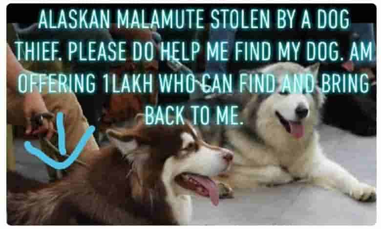 చుట్టుపక్కల ప్రాంతాలన్నీ గాలించిన అనంతరం తను పెంచుకుంటున్న రేర్ బ్రీడ్ కుక్క కిడ్నాపయ్యిందని నగరంలోని హనుమంతనగర పోలీసులకు ఫిర్యాదు చేశాడు. కుక్క ఫోటోలను..పాంప్లెట్స్లో ముద్రించి నగరంతా పంచుతున్నాడు. దాని ఆచూకి తెలపినవారికి రూ 1 లక్ష బహుమానం కూడా ప్రకటించాడు. అలస్కన్ మలముటే బ్రీడ్ చైనాలో మాత్రమే ఉంటుంది. ఎరుపు, తెలుపు రంగుల మిక్స్ంగ్ కలర్లో దీని లుక్ ఉంటుంది. సతీష్ మూడేళ్ల క్రితం రూ. 3 కోట్లు చెల్లించి ఈ కుక్కను కొనుగోలు చేశాడు. అప్పట్నుంచి ఆ పెట్ డాగ్ను ప్రాణంగా చూసుకుంటున్నాడు.