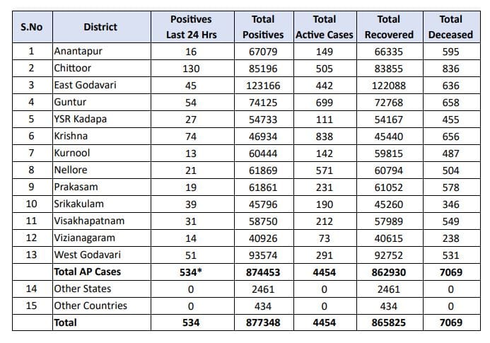 Corona Cases AP: ఏపీలో కొత్తగా 534 కరోనా కేసులు, 2 మరణాలు.. మొత్తం యాక్టివ్ కేసుల సంఖ్య ఎంతంటే..!