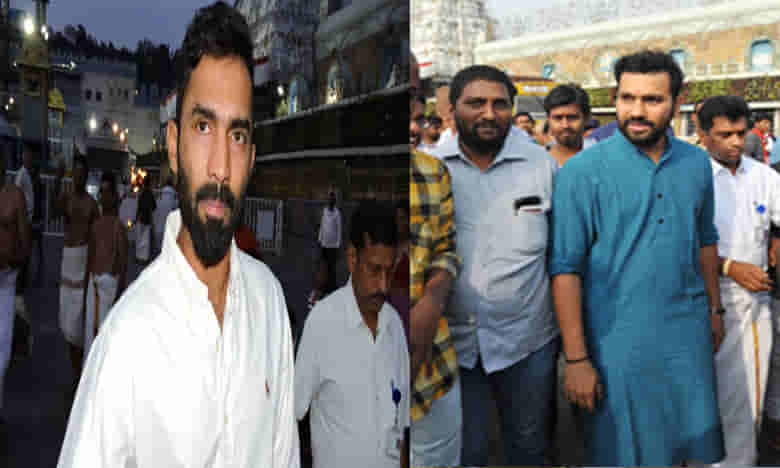 టీమిండియా క్రికెటర్స్ రోహిత్ శర్మ, దినేష్ కార్తీక్ శ్రీవారి సేవలో పాల్గొన్నారు. గురువారం ఉదయం వీఐపీ బ్రేక్లో స్వామి వారిని దర్శించుకున్నారు. అనంతరం స్వామి వారి తీర్థప్రసాదాలను అందించారు అధికారులు. 2017లో ఐపీఎల్ టైటిల్ గెలిచిన తర్వాత సతీసమేతంగా వెంకన్నను దర్శించుకున్న అనంతరం మళ్లీ ఇప్పుడే తిరుమలకు వచ్చారు. ఐపీఎల్లో ముంబయి ఇండియన్స్ ఫైనల్కి చేరడంతో స్వామివారి ఆశీస్సుల కోసం తిరుమలకు వచ్చినట్టు రోహిత్శర్మ తెలిపారు. ఈ సందర్భంగా రోహిత్ శర్మను చూసేందుకు అభిమానులు పోటీ పడ్డారు.