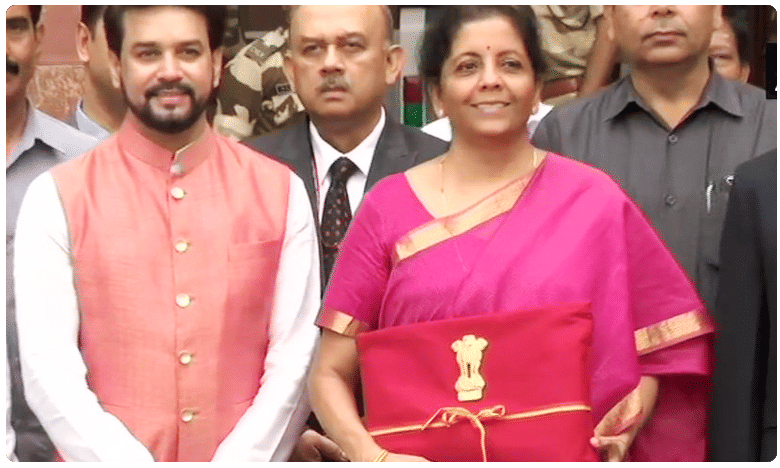 సాధారణంగా గత ఆర్థిక మంత్రులు బడ్జెట్ పత్రాలను గోధుమ వర్ణ సూట్కేస్లో పార్లమెంట్కు తీసుకెళ్లేవారు. అయితే.. ఈసారి ఆర్థిక శాఖ కార్యాలయం నుంచి పార్లమెంట్కు బయల్దేరిన నిర్మలా సీతారామన్ చేతిలో బ్రీఫ్ కేసు కాకుండా ఎర్రటి వస్త్రంతో చుట్టిన పార్శిల్ లాంటి జ్యూట్ బ్యాంగ్ కనిపించింది. దానిపై రాజముద్ర కూడా ఉంది. సంప్రదాయాన్ని పక్కన బెట్టి ఎర్రటి జ్యూట్ బ్యాగ్లో బడ్జెట్ పత్రాలు తీసుకొచ్చారు నిర్మలా సీతారామన్.
