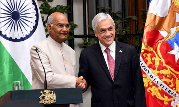 శాంటియాగో : ప్రపంచాన్ని పట్టి పీడిస్తున్న ఉగ్రవాదాన్ని తుదముట్టించేందుకు భారత్, చిలీలు ఇకపై సంయుక్తంగా కలిసి పనిచేయనున్నాయి. ఈ మేరకు ఇరు దేశాల ప్రతినిధులు అవగాహన ఒప్పందాలపై సంతకాలు చేశారు. రాష్ట్రపతి రామ్నాథ్ కోవింద్ విదేశీ పర్యటనలో భాగంగా ప్రస్తుతం చిలీలో పర్యటిస్తున్నారు. గనులు, సంస్కృతి, దివ్యాంగుల సాధికారతకు సంబంధించిన మూడు ఒప్పందాలపై ఇరు దేశాలు సంతకాలు చేశాయి. ఇండియా-చిలీ బిజినెస్ ఫోరంలో రాష్ట్రపతి మాట్లాడుతూ.. ఆర్థిక భాగస్వామ్యం పెంపుదలకు ఇరుదేశాలు కట్టుబడి ఉన్నాయన్నారు. భారత్కు లాటిన్ అమెరికా ప్రాంతంలో చిలీ ఆరో పెద్ద భాగస్వామి అన్నారు. చిలీ యూనివర్సిటీకి చెందిన యువ శాస్త్రవేత్తలతో రాష్ట్రపతి రామ్నాథ్ కోవింద్ సమావేశమయ్యారు.