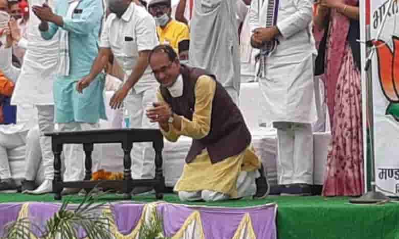 మధ్యప్రదేశ్ ముఖ్యమంత్రి శివరాజ్ సింగ్ చౌహాన్ అసెంబ్లీ ఉప ఎన్నికల ప్రచార వేదికపై మోకాళ్లపై వంగి దండం పెట్టిన ఫోటో ఇప్పుడు వైరల్ అవుతోంది. సీఎం చర్యను మాజీ ముఖ్యమంత్రి కమల్నాథ్ విమర్శించగా, శివరాజ్ దీటుగా ప్రతిస్పందించారు. ఆ రాష్ట్రానికి చెందిన జోతిరాధిత్య సింధియాతోపాటు 28 మంది కాంగ్రెస్ ఎమ్మెల్యేలు గత ఏడాది రాజీనామా చేసి బీజేపీలో చేరడంతో కమల్నాథ్ నాయకత్వంలోని కాంగ్రెస్ ప్రభుత్వం కుప్పకూలింది. వీరి రాజీనామాలతో ఖాళీ అయిన 28 స్థానాలకు నవంబర్ నెలలో ఉప ఎన్నికలు జరుగనున్నాయి. ఈ నేపథ్యంలో మాండ్సౌర్ జిల్లాలోని సువస్రా నియోజకవర్గంలో మాజీ ఎమ్మెల్యే హర్దీప్ సింగ్ డాంగ్ బీజేపీ అభ్యర్థిగా ఎన్నికల బరిలో నిలిచారు. ఆయనకు మద్దతుగా నిర్వహించిన ప్రచార సభలో మధ్యప్రదేశ్ సీఎం శివరాజ్ సింగ్ చౌహాన్ పాల్గొన్నారు. ఈ సందర్భంగా శివరాజ్ సింగ్ మోకాలిపై కూర్చొని ఓటర్లు, పార్టీ కార్యకర్తలకు ధన్యవాదాలు తెలిపి బీజేపీ అభ్యర్థిని గెలిపించాలని కోరారు.