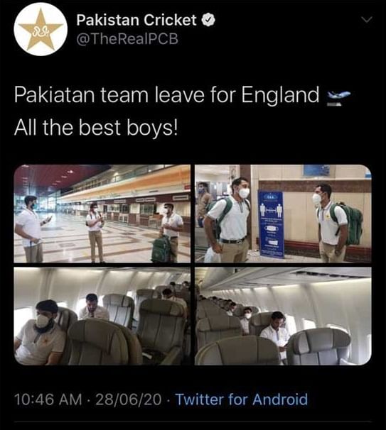 పాకిస్థాన్ జట్టు ఇంగ్లాండ్ బయల్దేరుతున్న నేపథ్యంలో పాకిస్థాన్ క్రికెట్ బోర్డు(పీసీబీ) చేసిన ఓ ట్వీట్ ఇప్పుడు సోషల్ మీడియాలో వైరల్ అవుతోంది. ఇక దానికి కారణం లేకపోలేదు.