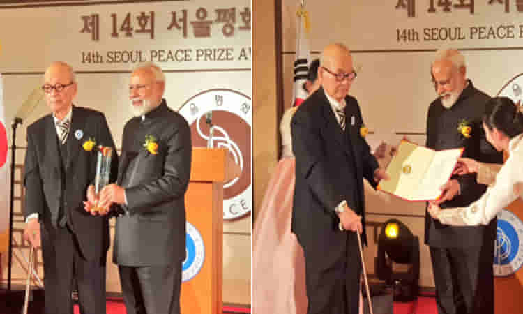 సియోల్: దక్షిణా కొరియా ప్రభుత్వం నుంచి ప్రతిష్ఠాత్మక సియోల్ శాంతి బహుమతిని ప్రధాని నరేంద్ర మోదీ శుక్రవారం అందుకున్నారు. భారతదేశానికి చెందిన తొలి వ్యక్తిగా మోదీ ఈ బహుమతిని అందుకోవడం విశేషం. అంతర్జాతీయ సహకారం, ప్రపంచ అభివృద్ధి, మానవ అభివృద్ధికి చేసిన సేవలకుగానూ దక్షిణకొరియా ప్రభుత్వం సియోల్ శాంతి బహుమతిని మోదీకి ప్రదానం చేసింది. ఈ అవార్డు తనకు దక్కిన వ్యక్తిగతమైన గౌరవం కాదని, ఇది దేశ ప్రజలకు చెందుతుందని మోదీ అన్నారు. గత అయిదేళ్లలో భారత్ సాధించిన ప్రగతికి ఈ అవార్డు నిదర్శనమన్నారు. 130 కోట్ల మంది భారతీయుల సత్తాకు ఈ అవార్డు దక్కుతుందన్నారు.