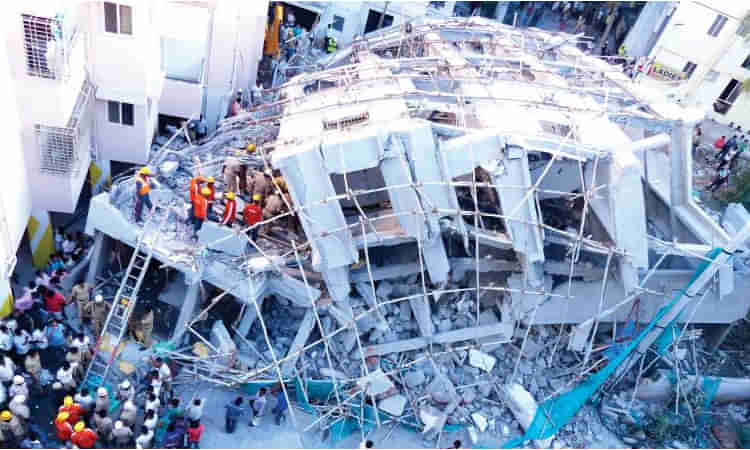 నిర్మాణంలో ఉన్న బిల్డింగ్ కుప్పకూలడంతో శిథిలాల కింద ఇంకా కొంతమంది కార్మికులు చిక్కుకున్నట్లు తెలుస్తోంది. శిథిలాల కింద చిక్కుకున్న వారిని రక్షించేందుకు రెస్క్యూ సిబ్బంది తీవ్రంగా శ్రమిస్తున్నారు. కాగా.. ఘటనా స్థలాన్ని సందర్శించారు రెవెన్యూ అధికారులు. బిల్డింగ్ కూలిపోవడానికి గల కారణాలు ఇంకా తెలియాల్సి ఉంది.