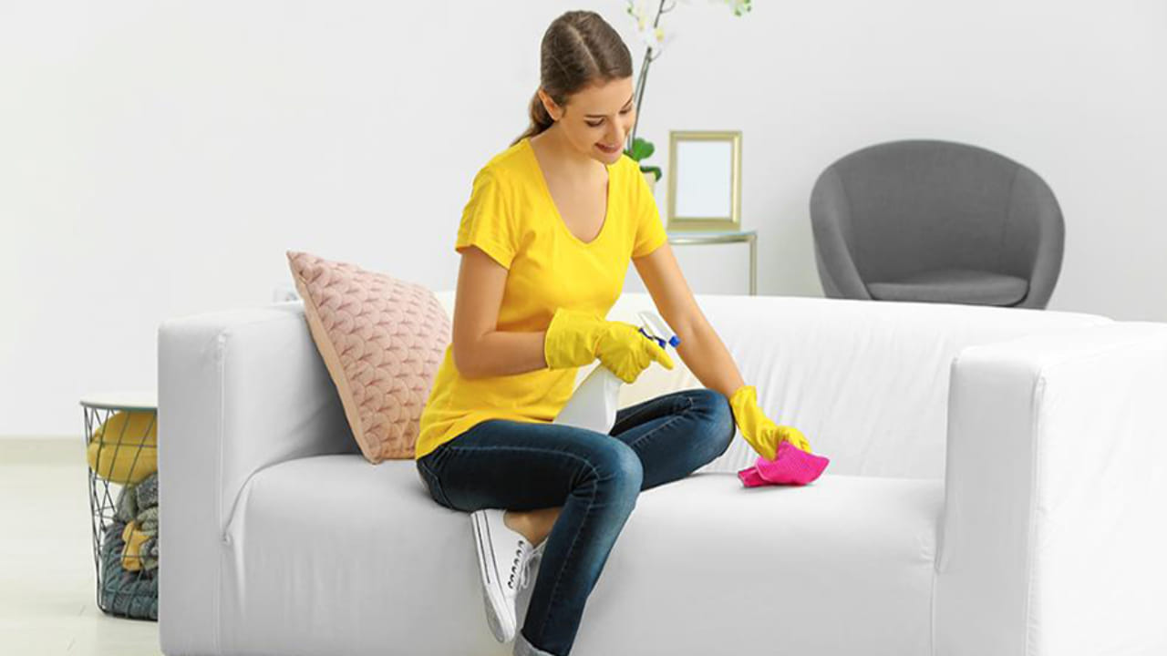 సోఫాపై పేరుకునే దుమ్ము, ధూళిని తొలగించడానికి వారానికి కనీసం రెండుసార్లైనా మెత్తని బ్రష్ లేదా వాక్యూమ్ క్లీనర్తో శుభ్రం చేయండి. చిన్నపాటి మరకలు పడిన వెంటనే వాటిని తడి గుడ్డతో తుడిచేయండి.