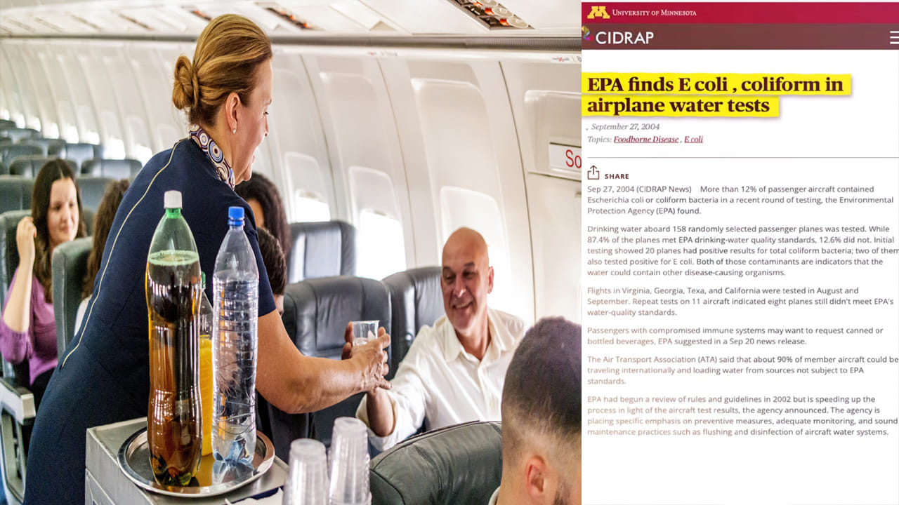 విమానంలో వచ్చే ట్యాప్ నీటి గురించి. మనకు బ్రష్ చేసుకోవాలన్నప్పుడు లేదా చేతులు, ముఖం కడుక్కోవాలనిపించినప్పుడు విమానంలోని ట్యాప్ నీటిని వాడటం సహజమే. కానీ ఆ నీరు నిజంగా ఎంత వరకు సురక్షితం? విమానాల్లో ఉపయోగించే నీరు విమానం నేల మీద ఉన్నప్పుడు..
