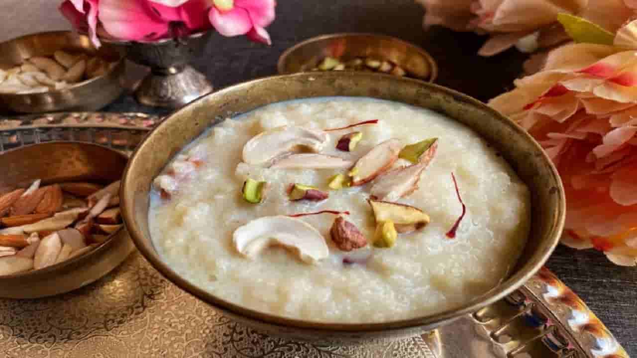 మీ ఇంట్లో వస్తువులతోనే డెలిషియస్ రెసిపీని తయారు చేసుకోవచ్చు. దీనికోసం ఒక లీటర్ పాలు, 80 గ్రాముల బియ్యం, రుచికి సరపడా చక్కెర, డ్రై ఫ్రూట్స్, పచ్చి ఏలకులు, బాదం పప్పు, అవసరం అయితే డ్రై ఫ్రూట్స్ వేసుకోవచ్చు.