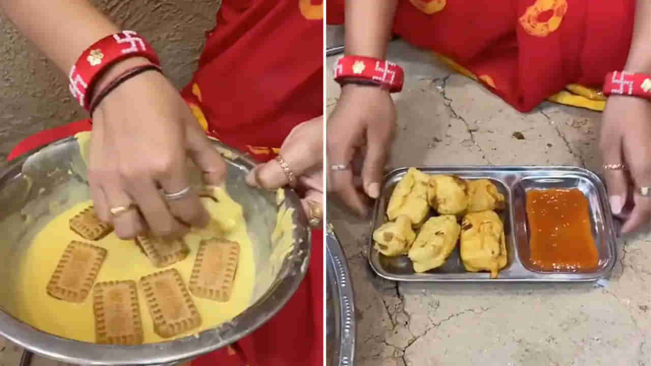 చల్లని సాయంకాలం వేళలో వేడివేడి టీతో ప్లేట్ పకోడీ తింటే ఆ మజానే వేరు. కారంగా కరకర లాడుతూ ఉండే పకోడి ఇష్టపడని వారు దాదాపు ఉండరు. బయట రెస్టారెంట్లలోనే కాకుండా ఇంట్లో కూడా చాలా మంది స్నాక్స్ తయారు చేసుకోవాలంటే తొలుత మదిలో మెదిలేది పకోడీనే. ఉల్లి పకోడి, బ్రెడ్ పకోడి, చికెన్ పకోడి.. ఇలా రకరకాల స్పెషల్స్ చేసుకుని ఆరగిస్తుంటారు. అయితే మీరెప్పుడైనా బిస్కెట్ పకోడీ ట్రై చేశారా? అదేంటి అని అనుకుంటున్నారా? మీరు సరిగ్గానే చదివారు.. బిస్కెట్ పకోడీ ఎలా తయారు చేస్తారు.. అసలదేం బాగుంటుంది అని ముఖం వికారంగా పెట్టే ఉంటారు. అసలు విషయం ఏంటంటే.. ఓ గృహిణి నిజంగానే బిస్కెట్లతో పకోడీ తయారు చేసింది. అంతే ఆమె బిస్కెట్ల పకోడీ వీడియో సోషల్ మీడియాలో కరోనా వైరస్ కంటే వేగంగా వైరల్ అయ్యింది. మీరూ ఈ వింత వంటకం చూసి తరించండి..