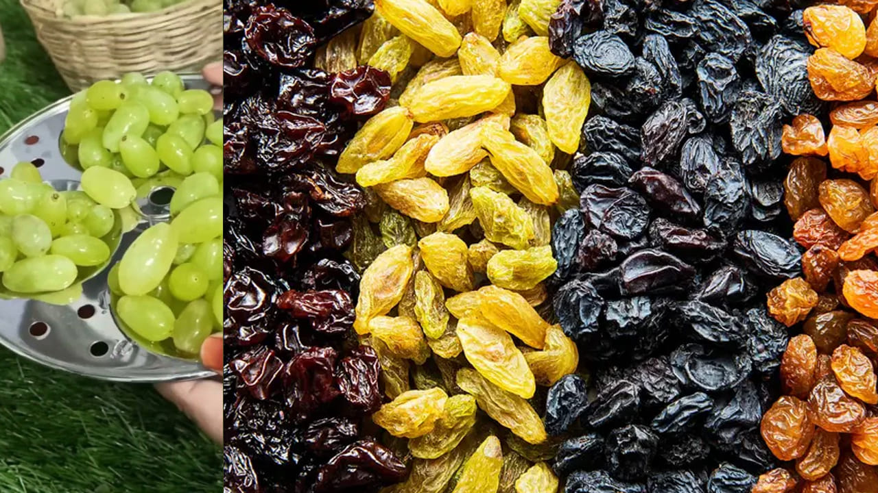 ఎండబెట్టడం: ఉడికిన ద్రాక్ష పూర్తిగా చల్లారిన తర్వాత, ఎండబెట్టే ప్రక్రియను ప్రారంభించాలి. దీని కోసం, ఒక వెడల్పాటి బేసిన్ లేదా ప్లాస్టిక్ కవర్ను తీసుకోవాలి. దానిపై శుభ్రమైన, పల్చటి కాటన్ క్లాత్ను పరచాలి. ఆవిరి పట్టిన ద్రాక్షను ఒక్కొక్కటిగా విడదీస్తూ, ఒకదానికొకటి అంటుకోకుండా కాటన్ క్లాత్పై అమర్చాలి. ఈ విధంగా అమర్చిన ద్రాక్షను బాగా ఎండగా ఉన్న ప్రదేశంలో నాలుగు రోజుల పాటు ఎండబెట్టాలి. క్రమం తప్పకుండా ఎండ తగిలేలా చూసుకోవాలి. నాలుగు రోజుల తర్వాత, ద్రాక్ష పూర్తిగా ఎండు ద్రాక్షగా మారి, సంపూర్ణంగా తయారవుతుంది.