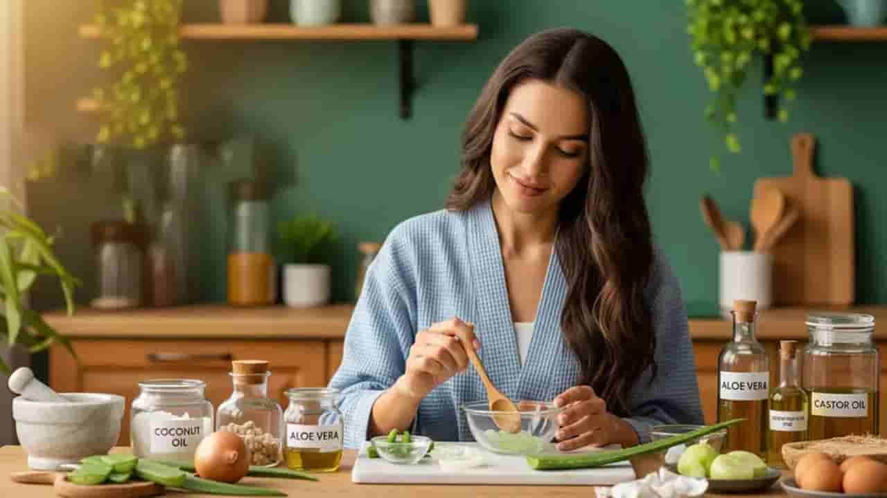 జుట్టు సంరక్షణలో రసాయన ఉత్పత్తుల కంటే సహజ సిద్ధమైన ఇంటి చిట్కాలు అద్భుతంగా పనిచేస్తాయి. వంటింట్లో లభించే ఉల్లిపాయ రసం, మెంతులు, కలబంద వంటి పదార్థాలు కుదుళ్లను బలోపేతం చేసి జుట్టు ఒత్తుగా పెరిగేలా చేస్తాయి. అంతేకాదు, ఖర్చు లేకుండా పొడవైన కురులను సొంతం చేసుకోచ్చు. ఇవి జుట్టు ఎదుగుదలకు తోడ్పడటమే కాకుండా, చుండ్రు, తెల్ల జుట్టు వంటి అనేక సమస్యలను పరిష్కరిస్తాయి.