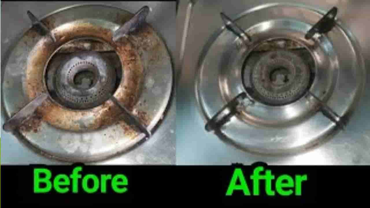 గ్యాస్ స్టవ్ మీద ప్లేట్లు, బర్నర్లను శుభ్రం చేయడంలో డిష్ వాషింగ్ లిక్విడ్, వేడి నీరు చాలా ప్రభావవంతంగా ఉంటాయి. దీని కోసం, ఒక బకెట్లో వేడి నీటిని పోసి దానికి కొన్ని చుక్కల డిష్ వాషింగ్ లిక్విడ్ వేసి బాగా కలపండి. ఇప్పుడు ప్లేట్లు ,బర్నర్లను అందులో వేసి 15 నిమిషాలు నానబెట్టండి. తరువాత వాటిపై పేరుకుపోయిన మురికిని బ్రష్తో రఫ్ చేసి ఆరిన తర్వాత క్లాత్ తీసుకొని క్లీన్ చేయండి. ఇలా చేయడం ద్వారా మీ స్టవ్ కొత్త దానిలా ఎప్పుడూ మెరుస్తూ ఉటుంది.