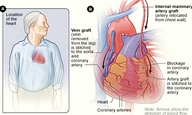హృదయ పంపులు మొత్తం శరీరానికి రక్తం అయినప్పటికీ, రక్తనాళాల వరుసపై ఆధారపడి ఉంటుంది. దానికోసం కొరోనరీ ధమనులు సొంత రక్త ప్రసరణ. ధమనులు తీవ్రంగా నిరోధించబడితే – కరోనరీ ఆర్టరీ వ్యాధి అని పిలువబడే ఒక పరిస్థితి – ఆక్సిజన్ గుండె కండరాలకు చేరుకోలేదు మరియు నష్టం జరుగుతుంది. ఈ విధంగా ఓపెన్ హార్ట్ సర్జరీలు చేయడం జరుగుతుంది.