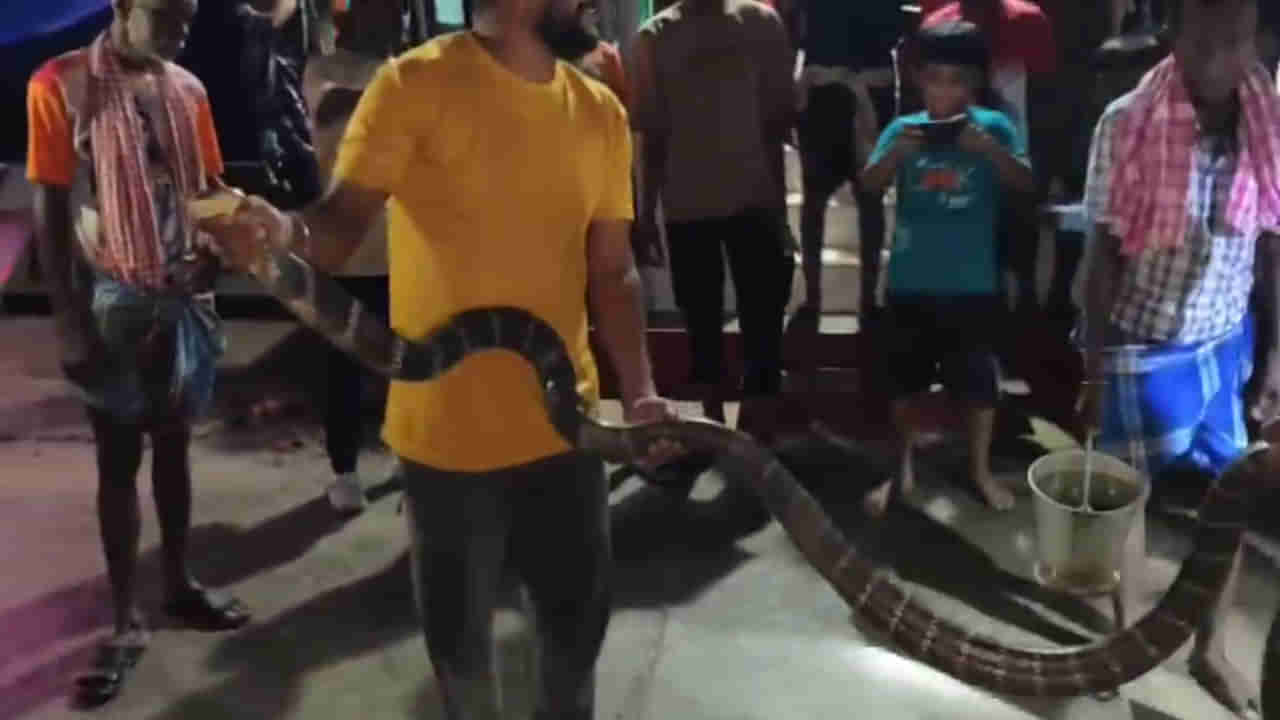 ఆ తర్వాత భారీ కింగ్ కోబ్రాను ఒక సంచిలో బంధించి.. గ్రామానికి దూరంగా ఉన్న అడవిలో వదిలేశారు. భారీ కింగ్ కోబ్రాను రెస్క్యూ చేయడంతో అంతా ఊపిరి పీల్చుకున్నారు.