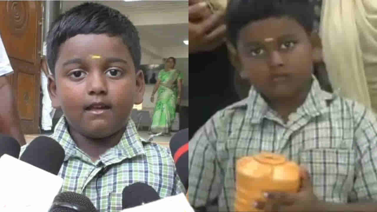 చిన్న పిల్లలు చాక్లెట్లు, బిస్కెట్లు కావాలని అల్లరి చేయడమే కాదు.. కొంతమంది ఇలా చిన్న వయసులోనే పెద్ద మనసు చాటుకుంటారు. తమిళనాడులోని కరూర్కు చెందిన ఎనిమిదేళ్ల విద్యార్థి తన కిట్టీ బ్యాంక్లో దాచుకున్న డబ్బుని భారత సైన్యానికి విరాళంగా ఇచ్చాడు. గత 10 నెలలుగా రెండవ తరగతి విద్యార్థి తన పాకెట్ మనీ, కుటుంబ సభ్యుల ఇచ్చిన డబ్బును దాచుకుంటున్నాడు. ఇప్పుడా డబ్బులను ఇండియన్ ఆర్మీకి విరాళాలను అందజేశాడు. చిన్నారి చేసిన ఈ పనికి అంతా ఫిదా అయిపోతున్నారు. ప్రస్తుతం విరాళం అందిస్తున్న ఆ చిన్నారి వీడియో సోషల్ మీడియాలో వైరల్ అయ్యింది.