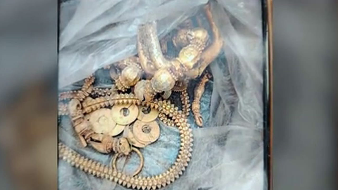 కర్నాటకలో గదగ్ జిల్లా లక్కుండి గ్రామంలో ఇంటి కోసం పునాది తీస్తుండగా గుప్త నిధి బయటపడడం తీవ్ర సంచలనం రేపింది. గంగవ్వ బసవరాజ్ రిత్తి ఇంటి స్థలంలో నిధి దొరికింది. శతాబ్ధాల కాలం నాటి బంగారాన్ని స్వాధీనం చేసుకున్నారు. లంకెబిందెల్లో గిన్నెలతో పాటు బంగారు ఆభరణాలు లభ్యమయ్యాయి. సమాచారం అందుకున్న అందుకున్న వెంటనే అదనపు జిల్లా కలెక్టర్ దుర్గేష్, ఎస్పీ రోహన్ జగదీశ్, ఏసీ గంగప్ప, తహసీల్దార్ శ్రీనివాస్ కులకర్ణి ఘటనాస్థలానికి చేరుకున్నారు. పురవాస్తుశాఖ అధికారులు కూడా అక్కడికి వచ్చి నిధిని పరిశీలించారు. లభ్యమైన బంగారు ఆభరణాలు ఏ కాలానికి చెందినవో అనే అంశంపై దర్యాప్తు కొనసాగుతోంది.