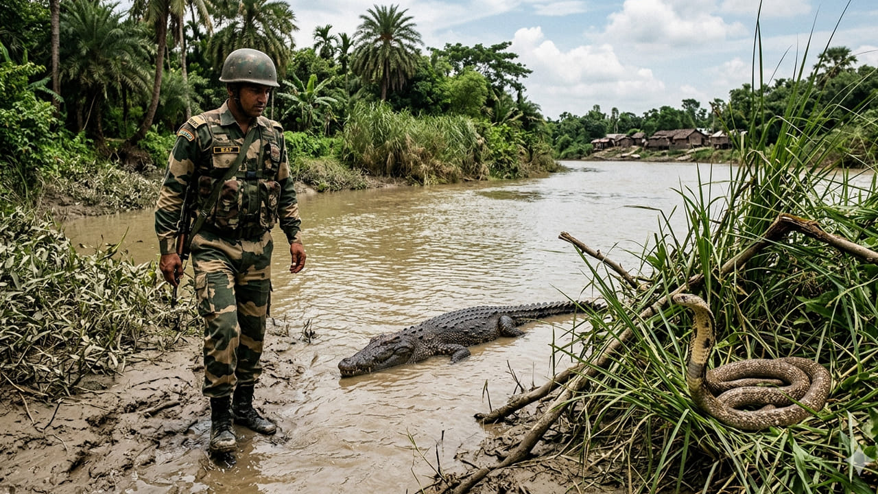 భారత్-బంగ్లాదేశ్ సరిహద్దుల్లో కంచె వేయడం సాధ్యం కాని చోట.. కాపలా కాయడం కష్టమవుతున్న వేళ.. బీఎస్ఎఫ్ సరికొత్త ఆయుధాలను నమ్ముకోబోతుంది. ఇకపై కేవలం జవాన్లే కాదు.. పాములు, మొసళ్లు కూడా పహారా కాయనున్నాయా? చొరబాటుదారుల వెన్నులో వణుకు పుట్టించేలా బీఎస్ఎఫ్ ప్లాన్ గురించి ఈ స్టోరీలో తెలుసుకుందాం..