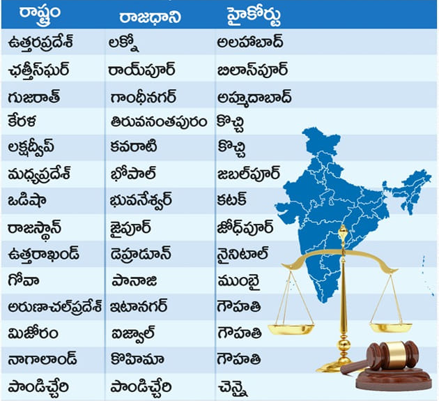 రాజధాని, హైకోర్టు వేర్వేరు ప్రదేశాల్లో ఉన్న రాష్ట్రాలివే!