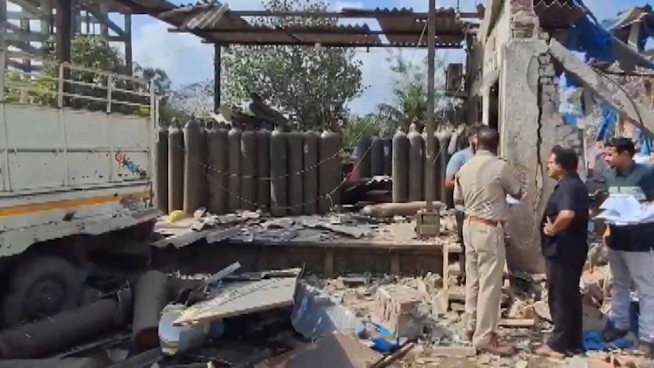VIDEO | A nitrogen gas warehouse explosion in Dadra claims four lives and leaves six others injured. Visuals from the spot. More details awaited.