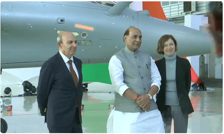 భారత్ అమ్ములపొదిలో మరో శక్తివంతమైన మరో అస్త్రం సమకూరింది. తొలి రఫేల్ యుద్ధ విమానాన్ని రక్షణమంత్రి రాజ్నాథ్సింగ్ ఫ్రాన్స్లో మంగళవారం అధికారికంగా స్వీకరించారు. 87వ ఎయిర్ఫోర్స్డే సందర్భంగా రఫేల్ యుద్ద విమానాన్ని అందుకోవడం ఎంతో సంతోషంగా ఉందని రక్షణ మంత్రి తెలిపారు. దసరా పర్వదినం రోజున రఫేల్ ఎయిర్క్రాఫ్ట్ డెలివరీ కావడం సరికొత్త అధ్యాయమని పేర్కొన్నారు. రఫేల్ జెట్ సరఫరాకు శ్రీకారం చుట్టుడంతో భారత్, ఫ్రాన్స్ దేశాల మధ్య ఒక సరికొత్త అధ్యాయానికి తెరతీసినట్టయ్యిందని పేర్కొన్నారు. రఫేల్జెట్లో ప్రయాణించాలని ఉత్సాహంగా ఉందని, రఫేల్ జెట్లు భారత్ వైమానిక దళాన్ని బలోపేత చేయనున్నాయని, వాయుసేనలో భారత్ బలోపేతమై శాంతిభద్రతల బలోపేతానికి మార్గం మరింత సుగమం కానుందని రాజ్నాథ్సింగ్ పేర్కొన్నారు. తొలుత రఫేల్ను స్వీకరిస్తూ రాజ్నాథ్సింగ్ దసరా సందర్భంగా ఆయుధపూజ నిర్వహించారు. రఫేల్ను స్వీకరించే సమయంలో రక్షణ మంత్రి వెంట ఫ్రాన్స్ అధ్యక్షుడు ఇమ్మాన్యుయేల్ మెక్రాన్ కూడా ఉన్నారు.