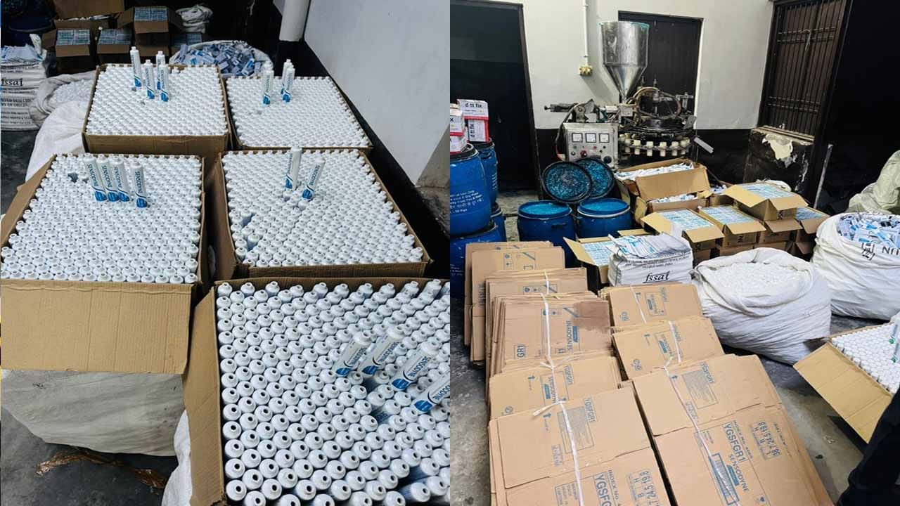 పోలీసుల దాడిలో భారీ పరిమాణంలో సామాగ్రిని స్వాధీనం చేసుకున్నారు. అందులో సుమారు 1,800 నింపిన నకిలీ టూత్పేస్ట్ ట్యూబ్లు, 10,000కు పైగా ఖాళీ ట్యూబ్లు, సుమారు 1,200 ప్యాక్ చేసిన ట్యూబ్లు, దాదాపు 130 కిలోగ్రాముల నకిలీ టూత్పేస్ట్, టూత్పేస్ట్ను తయారు చేయడానికి, ప్యాక్ చేయడానికి ఉపయోగించే యంత్రాలు ఉన్నాయి. దీనిని బట్టి ఇది చిన్నపాటి కార్యకలాపం కాదని, పూర్తిస్థాయి దందా అని స్పష్టంగా తెలుస్తోంది.