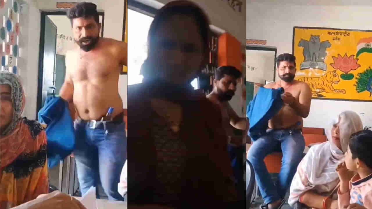 అయితే.. అతని చేష్టలన్ని ఓ మహిళా టీచర్ ధైర్యంగా సెల్ ఫోన్లో వీడియో తీశాడు. అలాగే అక్కడే ఉన్న ఓ కుర్రాడు మీరు బయటికి వెళ్లండి అంటూ శివకుమార్ అనే వ్యక్తిని గద్దించే ప్రయత్నం చేసినా అతను వినలేదు. పైగా షర్ట్ విప్పేసి.. క్లాస్ రూమ్లోనే అసభ్యంగా ప్రవర్తించాడు. ఎదురుగా మహిళా టీచర్లు, విద్యార్థులు ఉన్నారనే ఇంకితం కూడా లేకుండా ప్రవర్తించాడు. మీ డ్యూటీ టైమ్ అయిపోయింది, ఇక్కడి నుంచి వెళ్లిపోవాలంటూ టీచర్లను బెదిరించాడు. ఎంత తాగి ఉన్నా కూడా.. ఇలా చేయడం ఏంటంటూ ఆ వీడియో చూసిన నెటిజన్లు ఆగ్రహం వ్యక్తం చేస్తున్నారు. సోషల్ మీడియాలో వీడియో వైరల్ కావడం, ఈ ఘటనపై టీచర్లు పోలీసులకు ఫిర్యాదు చేయడంతో శివకుమార్ను పోలీసులు అదుపులోకి తీసుకున్నట్లు సమాచారం.