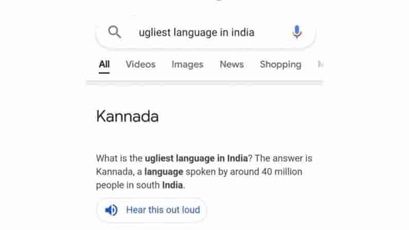 ఇటీవల భారతదేశంలో అగ్లీయస్ట్ భాష ఏది అని గూగుల్ సెర్చ్ ఇంజిన్లో వెతికితే.. సమాధానం ”కన్నడ” అని వచ్చింది, దక్షిణ భారతదేశంలో సుమారు 40 మిలియన్ల మంది మాట్లాడే భాష” అని చూపించిన సంగతి తెలిసిందే. దీనిపై కన్నడ ప్రజల తీవ్ర ఆందోళన వ్యక్తం చేశారు. సోషల్ మీడియాలో గూగుల్ దౌర్జన్యం చేస్తోందని ఆగ్రహం వ్యక్తం చేశారు. గూగుల్ క్షమపణ చెప్పాలని.. దానిపై కఠిన చర్యలు తీసుకోవాలని అక్కడి వారు డిమాండ్ చేయడంతో గూగుల్ దిగొచ్చింది. కన్నడ ప్రజలకు క్షమపణలు తెలిపింది. సెర్చ్ ఇంజిన్ లో పొరపాటు జరిగింది. ఇది కావాలని చేసిన పని కాదు.. సెర్చ్ ఇంజిన్ లో జరిగిన పొరపాట్లను వెంటనే సరిచేస్తాం.. మీ మనోభావాలను దెబ్బతీసినందుకు క్షమపణలు కోరుతున్నాం అంటూ ట్విట్టర్ వేదికగా విజ్ఞప్తి చేసింది.