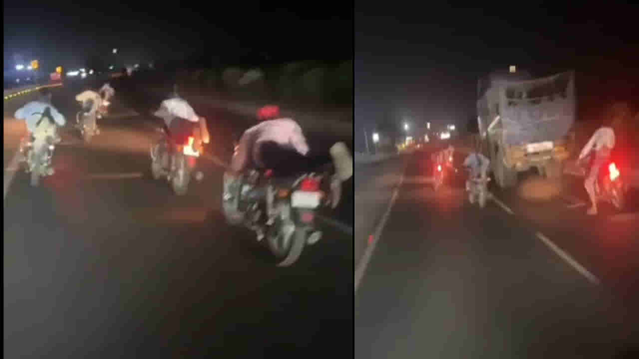 గుజరాత్ రాష్ట్రం జామ్నగర్-రాజ్కోట్ హైవే పక్కన ఉన్న ఫల్లా గ్రామం వద్ద యువకులు బైక్ రేసులు, స్టంట్లు చేశారు. రాత్రిపూట హైవేపై ప్రమాదకర రీతిలో స్టంట్లు చేశారు. అతివేగంతో ఎదురుగా ఏం వస్తున్నాయో.. ఏం వెళ్తున్నాయో అనే జాగ్రత్త లేకుండా బైకులపై పడుకుని డ్రైవ్ చేశారు. తమ కన్నా ముందు వెళ్తున్న వాహనాలను సైతం తప్పిస్తూ ముందుముందుకు దూసుకుపోయారు. పైగా ఒకరితో ఒకరు పోటీ అన్నట్లుగా బైకులతో చిత్ర విచిత్ర విన్యాసాలు చేశారు. ఇదే క్రమంలో ఓ యువకుడు తన పక్కగా వేగంగా వెళ్తున్న ఓ లారీని తప్పించబోయి ప్రమాదవశాత్తు ఢీకొని అంతే వేగంతో కింద పడిపోయాడు. దీని ఫలితంగా తీవ్ర గాయాలపాలై రక్తమోడుతూ అక్కడిక్కడే ఆ యువకుడు ప్రాణాలు కోల్పోయాడు.