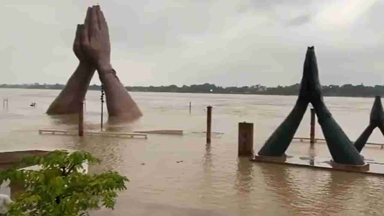 #WATCH | Varanasi, UP: Namo Ghat is seen flooded as the water level of the Ganga River rises, following continuous rainfall in the region. pic.twitter.com/TDAfL6nigX