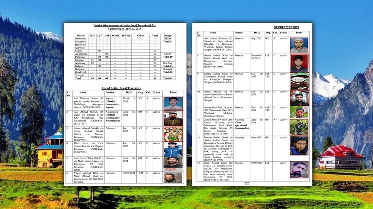 లోయలో ఉన్న స్థానిక ఉగ్రవాదుల జాబితాను సైన్యం సిద్ధం చేసింది. ప్రస్తుతం, కాశ్మీర్లో మొత్తం 14 మంది స్థానిక ఉగ్రవాదులు చురుకుగా ఉన్నారని, వీరి గురించి సైన్యం పూర్తి వివరాలను సేకరించింది. సోపోర్లో స్థానిక లష్కర్ ఉగ్రవాది కూడా చురుకుగా ఉన్నాడని నిఘా వర్గాలు తెలిపాయి. పహల్గామ్ దాడి జరిగిన మూడు రోజుల తర్వాత, సైన్యానికి భయపడి, కాశ్మీర్ రెసిస్టెన్స్ ఫ్రంట్ దాడికి బాధ్యత వహించడానికి నిరాకరించింది.