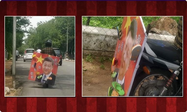 వెరైటీ నిరసన.. స్కూటర్ వెనుక జిన్పింగ్ ఫోటో.. ఫోటోకు చెప్పుల దండ..
