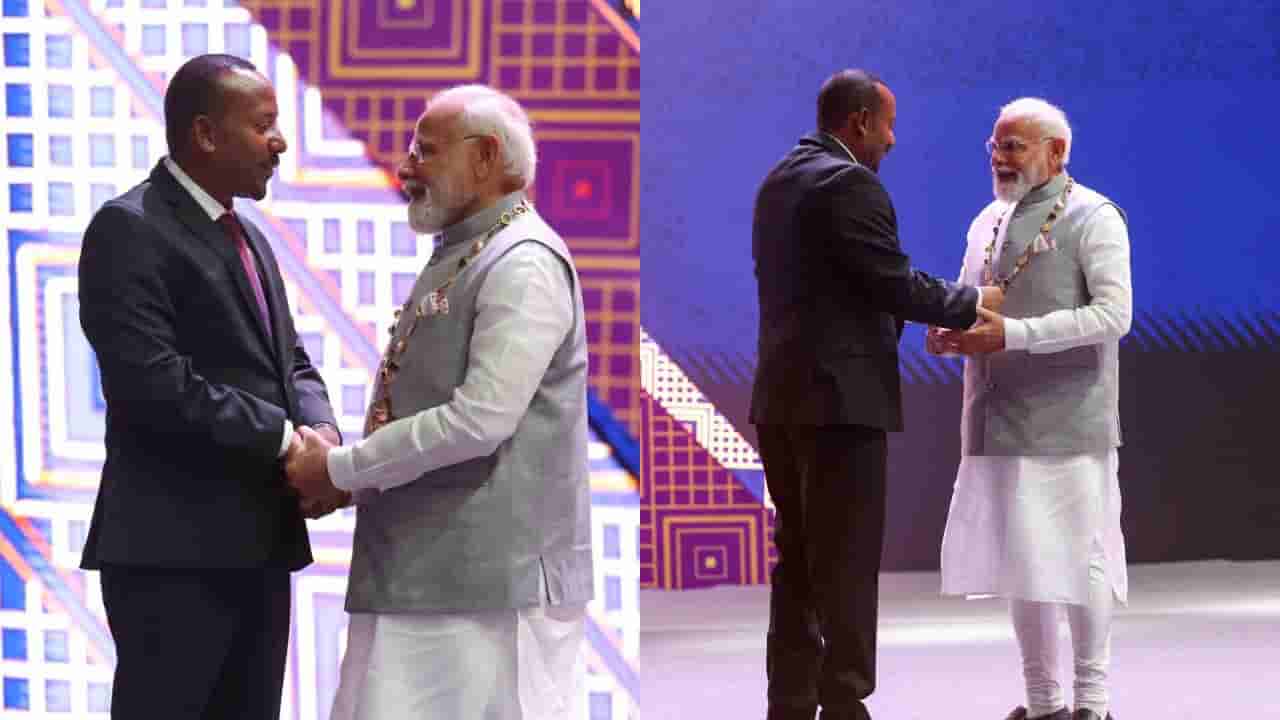 ప్రధాని నరేంద్ర మోదీకి మరో అంతర్జాతీయ గౌరవం దక్కింది. ఇథియోపియా దేశ అత్యున్నత పురస్కారమైన ‘ది గ్రేట్ హానర్ నిషాన్ ఆఫ్ ఇథియోపియా’ ఆయన్ను వరించింది. మంగళవారం అడిస్ ఇంటర్నేషనల్ కన్వెన్షన్ సెంటర్లో జరిగిన ప్రత్యేక కార్యక్రమంలో ఆదేశ ప్రధాని అబీ అహ్మద్ అలీ ప్రధాని మోదీకి ఈ పురస్కారిన్ని అందజేశారు. భారతదేశం-ఇథియోపియా భాగస్వామ్యాన్ని బలోపేతం చేయడంలో ఆయన చేసిన అసాధారణ కృషికి, ప్రపంచ రాజనీతిజ్ఞుడిగా ఆయన దార్శనిక నాయకత్వానికి గాను మోదీకి ఈ అవార్డును ప్రదానం చేసినట్లు విదేశాంగ మంత్రిత్వ శాఖ ప్రకటనలో తెలిపింది.