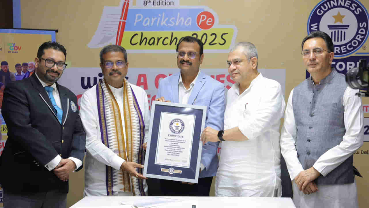 A matter of great delight and personal satisfaction to accept the Guinness World Record for ‘Pariksha Pe Charcha’ with Shri @AshwiniVaishnaw and Shri @JitinPrasada. #PPC2025 has set a world record with 3.53 crore+ registrations and over 21 crore viewership on television.… pic.twitter.com/9wV5DB4dZi