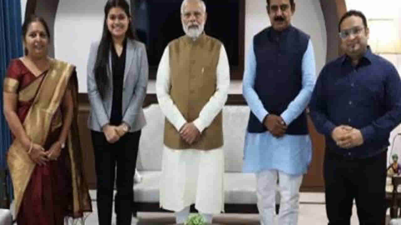 మధ్యప్రదేశ్లోని ఇండోర్కు చెందిన తనిష్క సుజిత్ అనే విద్యా్ర్థి 11 ఏళ్లకే పదో తరగతి పూర్తి చేసింది. 15 ఏళ్లకే బీఏ ఫైనల్ పరీక్షలు రాసేందుకు సిద్ధమైంది. డిగ్రీ అయిపోయాక లా కోర్సు చదివి భారత ప్రధన న్యాయమూర్తి కావలనే లక్ష్యంలో ఆ యువతి ముందుకు సాగుతోంది. కానీ 2020లో కరోనా బారిన పడి ఆమె తండ్రి, తాతలు ప్రాణాలు కోల్పోయారు. ఆ బాధను తట్టుకుని మనోధైర్యంతో తన లక్ష్యం వైపు అడుగులు వేస్తోంది. అయితే ఇటీవల భోపాల్ లోని కంబైన్డ్ కమాండర్స్ కాన్ఫరెన్స్ కోసం తనిష్క వెళ్లింది. ఈ సందర్భంగా అక్కడే ప్రధాని మోదీని కలసి దాదాపు 15 నిమిషాలు మాట్లాడుకున్నారు,