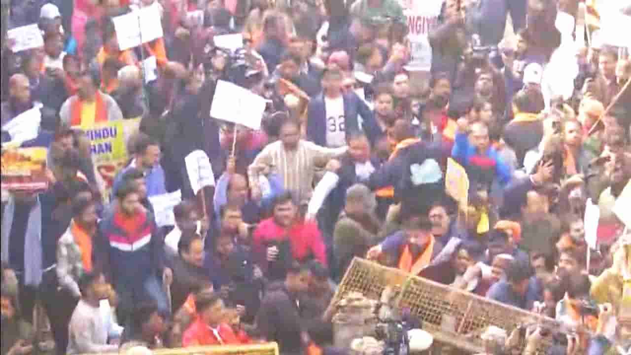 బంగ్లాదేశ్లో హిందువులపై దాడులకు నిరసనగా VHP కార్యకర్తలు, బంగ్లా రాయబార కార్యాలయంలోకి వెళ్లేందుకు యత్నించారు. దీంతో అడ్డుకున్న పోలీసులతో హిందూ సంఘాల వాగ్వాదం చోటు చేసుకుంది. బారికేడ్లను తోసుకుంటూ లోపలికి వెళ్లేందుకు ప్రయత్నించారు. భద్రతా దళాలు జనాన్ని నియంత్రించడానికి ప్రయత్నించగా, నిరసనకారులు బారికేడ్లను ఛేదించడంతో పరిస్థితి ఉద్రిక్తంగా మారింది. దీంతో ఆందోళనకారులను లాఠీలతో చెదరగొట్టారు పోలీసులు. మరోవైపు బంగ్లా హైకమిషన్ కార్యాలయం దగ్గర భద్రత కట్టుదిట్టం చేశారు. బంగ్లాదేశ్లో హిందువులపై దాడులకు నిరసనగా.. VHP, హిందూసంఘాల ఆందోళనల నేపథ్యంలో అలర్ట్ ప్రకటించారు. బంగ్లాదేశ్లో హిందువులపై మూకదాడులు జరుగుతున్నాయని.. యూనుస్ ప్రభుత్వం ఈ దాడులను అరికట్టాలని హిందువుల డిమాండ్ చేస్తున్నారు.